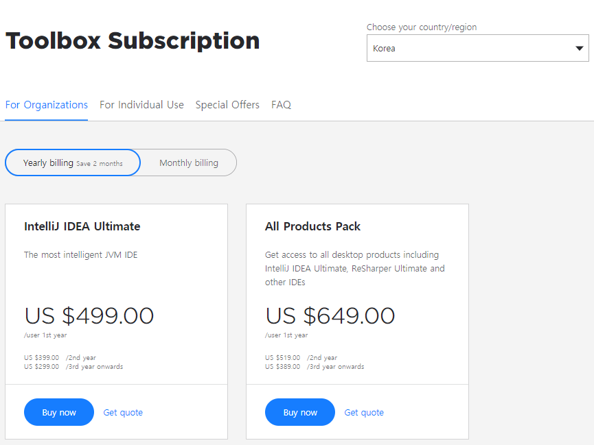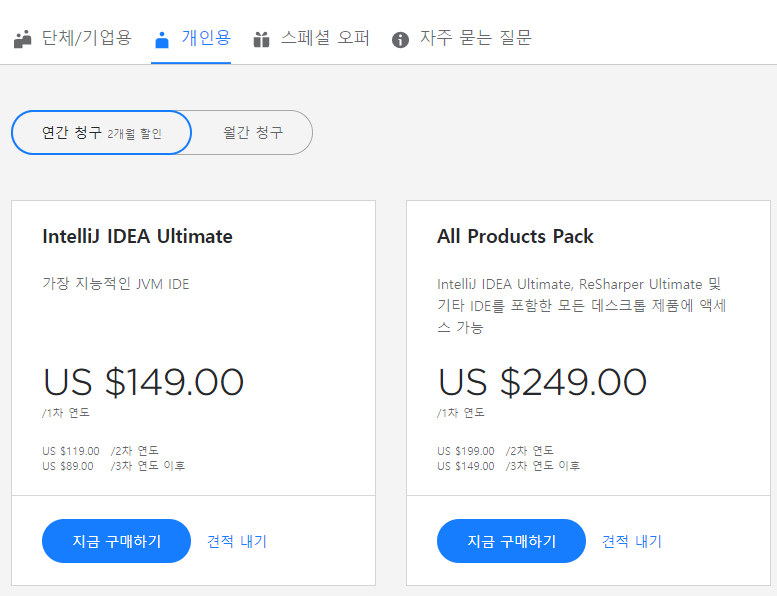 만약 기업용, 개인용으로 구매 한다면 이정도 비용이 필요하니, 참고 하도록 하자.