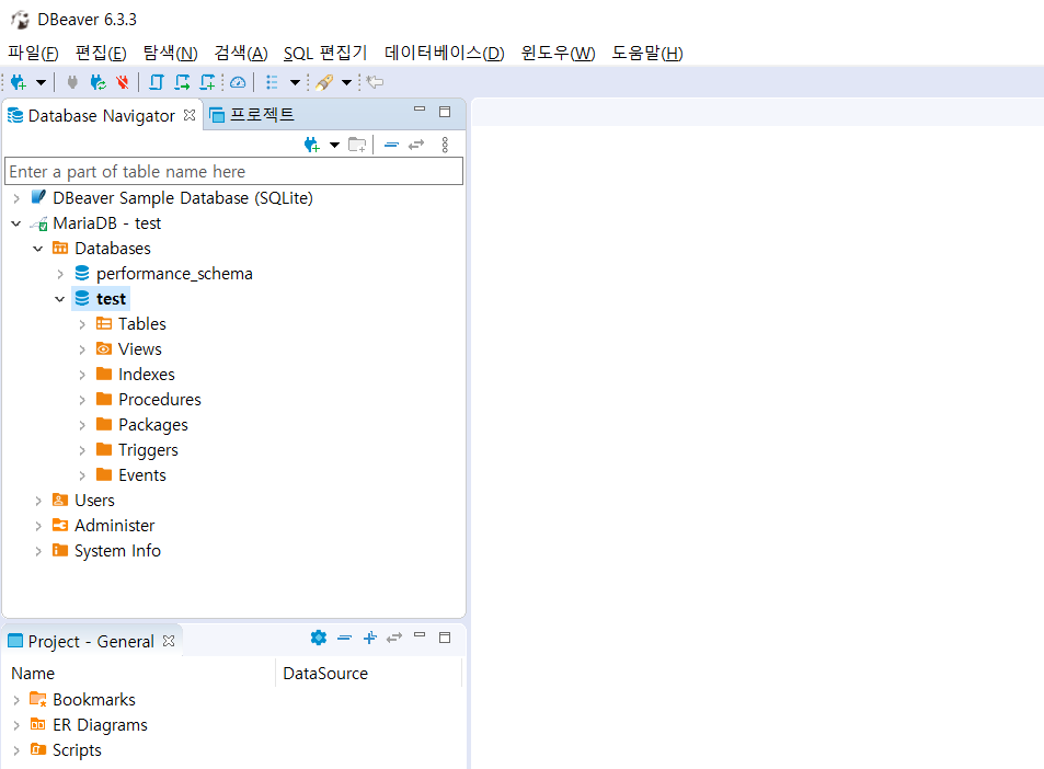 - 실행해보면 알겠지만 이클립스와 유사한 모양을 갖고 있고, 예상한대로 DBeaver는 이클립스 기반으로 만들어 졌다.