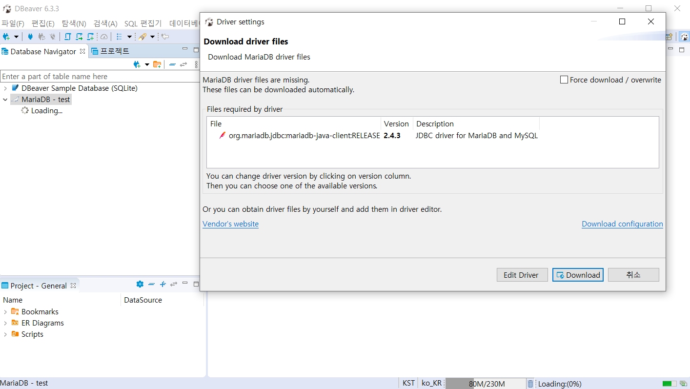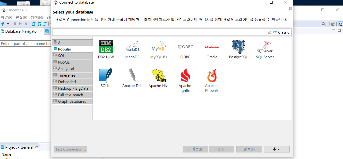 - 원하는 벤더사의 DB를 선택하자.