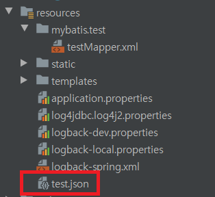 2. classPath 하위에 다음 내용의 test.json파일을 생성 하였다.