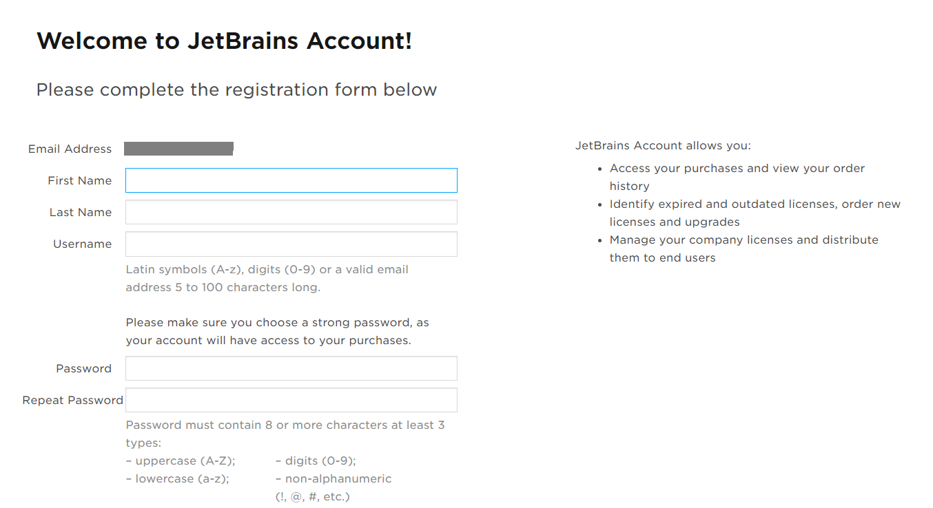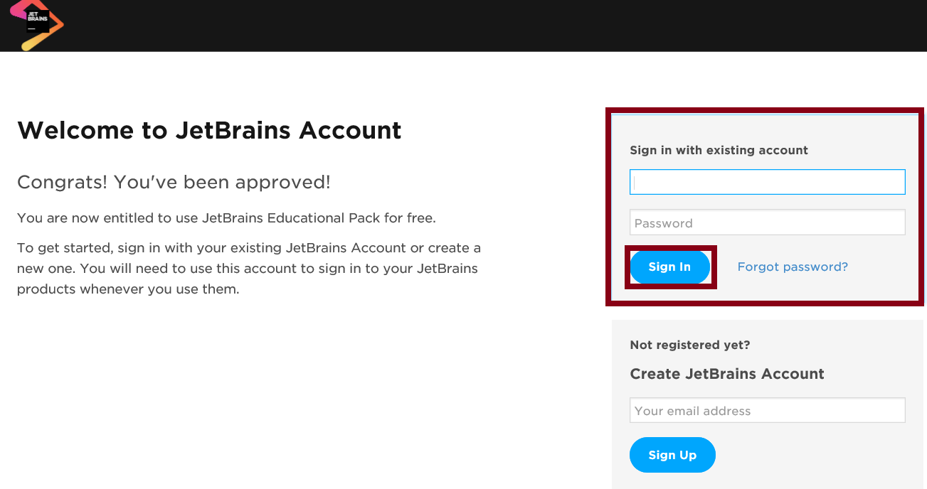 - "JetBrains Account" 사이트 창이 열리고, 맨 아래로 스크롤 후 활성화된 "I Accept"를 클릭한다.