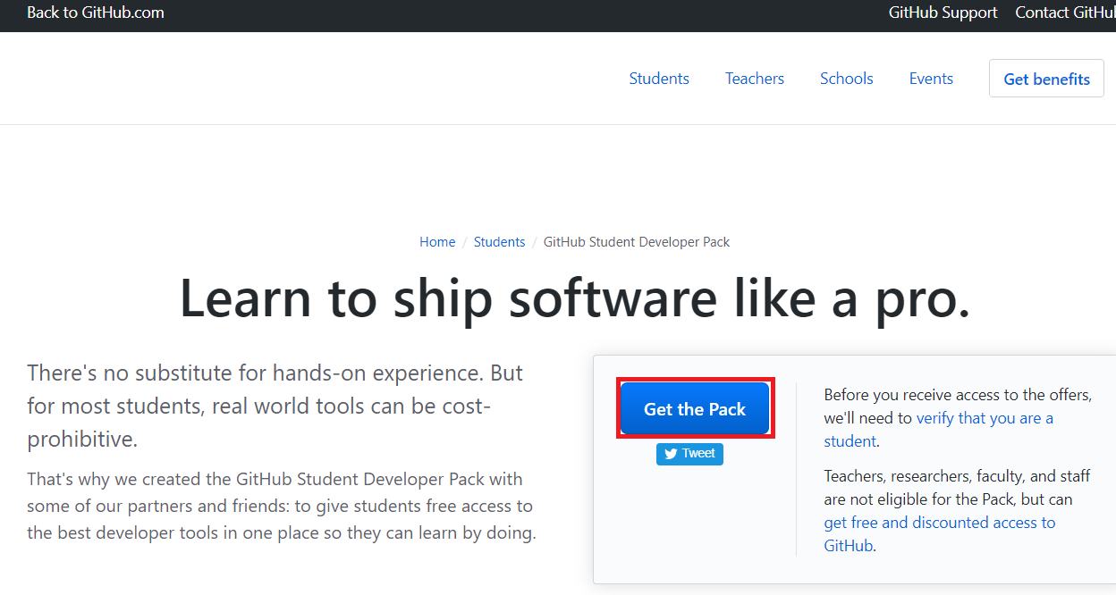 - "GitHub Student Developer Pack"을 선택 하자.