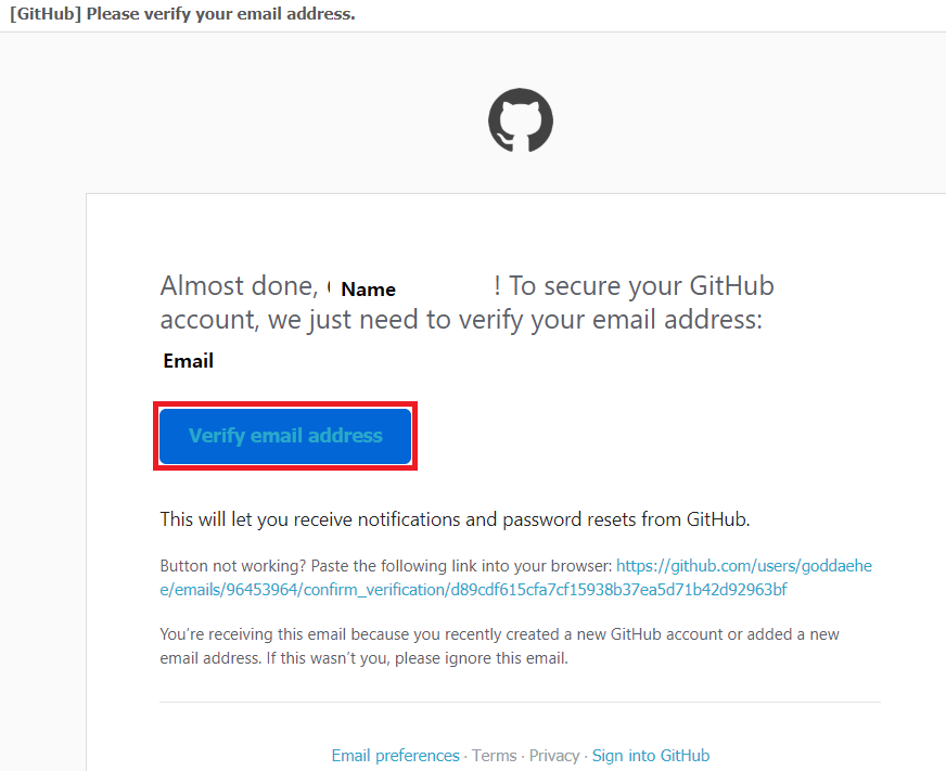 - 메일 확인 후 "Verify email address" 클릭 하여 인증 완료.