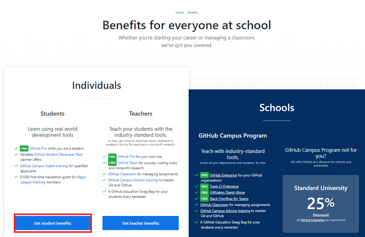 - "Get student benefits"를 클릭 하자.