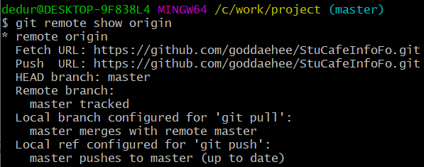 - git remote show 이름 : 특정 원격 저장소의 정보를 확인할 수 있다.