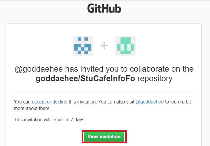 - 메일을 확인하면 해당 repository invite 메일이 와있을 것이다. "View invitation" 클릭
