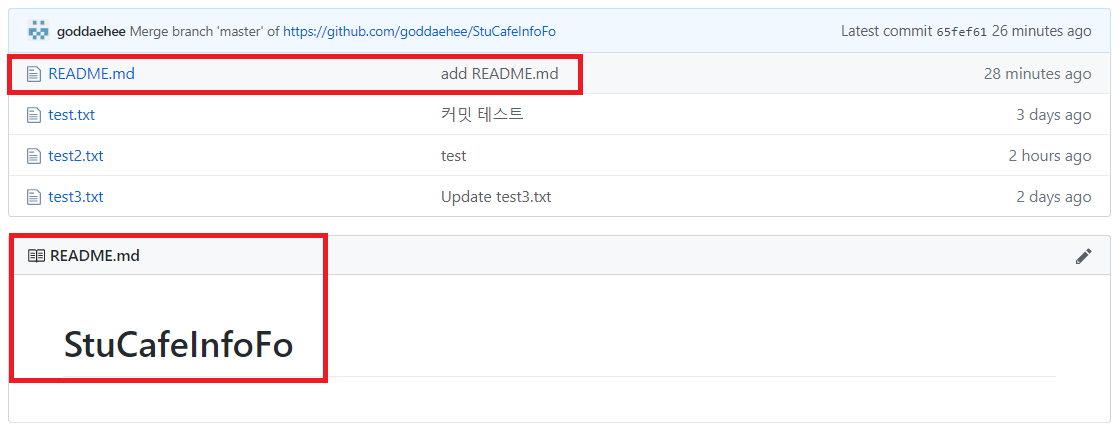 - 다시 GitHub에 들어가서 파일을 확인해보면 정상적으로 업로드 된 것을 볼 수 있다.