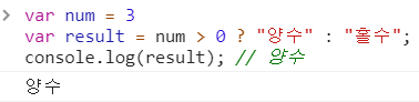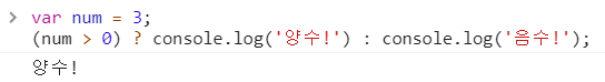 (num > 0) ? console.log('양수!') : console.log('음수!');