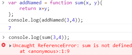 console.log(sum(3,4)); // Uncaught ReferenceError : sum is not defined 에러 발생