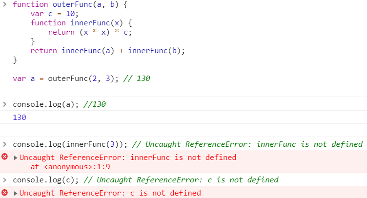 - 위의 예제에서 보면 함수 표현식에서 사용된 함수 이름이 외부 코드에서 접근 불가능 하기 때문에 오류가 발생 하였다.