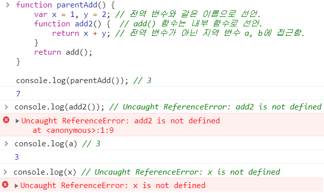 console.log(add2()); // Uncaught ReferenceError: add2 is not defined