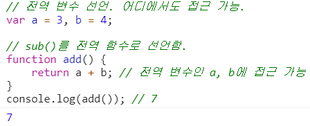 return a + b; // 전역 변수인 a, b에 접근 가능