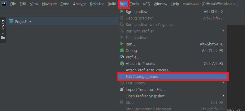 1) Run >> Edit Configurations... 클릭