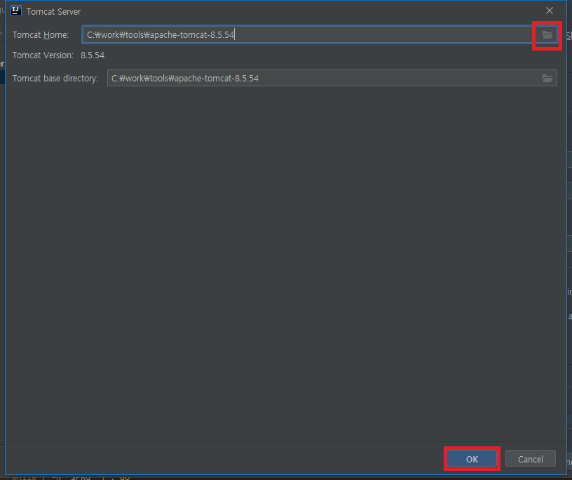 4) 본인의 톰캣이 설치된 디렉토리를 선택한다.