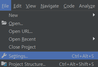 - File > Settings 클릭 (Ctrl + Alt + S)