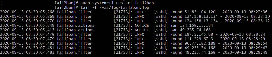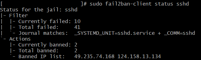 sudo yum install -y fail2ban-firewalld fail2ban-systemd jwhois