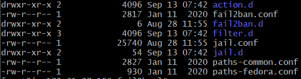 1) fail2ban의 기본 설정파일은 /etc/fail2ban/jail.conf 2) action.d - 계정 접속에 실패할 경우 사용할 수 있는 action 파일, .방화벽으로 ip차단을 할 수 있는 firewall.cmd-newconf 파일 등이 있다.3) fail2ban.conf : fail2ban 로그파일에 대한 설정을 할 수 있다. (loglevel, logtarget 등)4) fail2ban.d : 사용자 설정 디렉토리.5) jail.d : fail2ban 사용자 설정을 넣을 수 있는 디렉토리. fail2ban은 실행 시 해당 디렉토리에 있는 모든 설정내용을 적용한다.