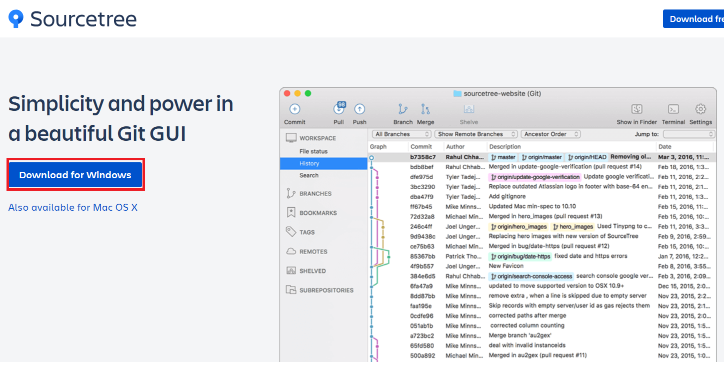 - 소스트리(SourceTree) 홈페이지에 접속하여 설치 프로그램을 Download 하자.