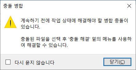 - 충돌 발생 파일 직접 수정 후 다시 커밋