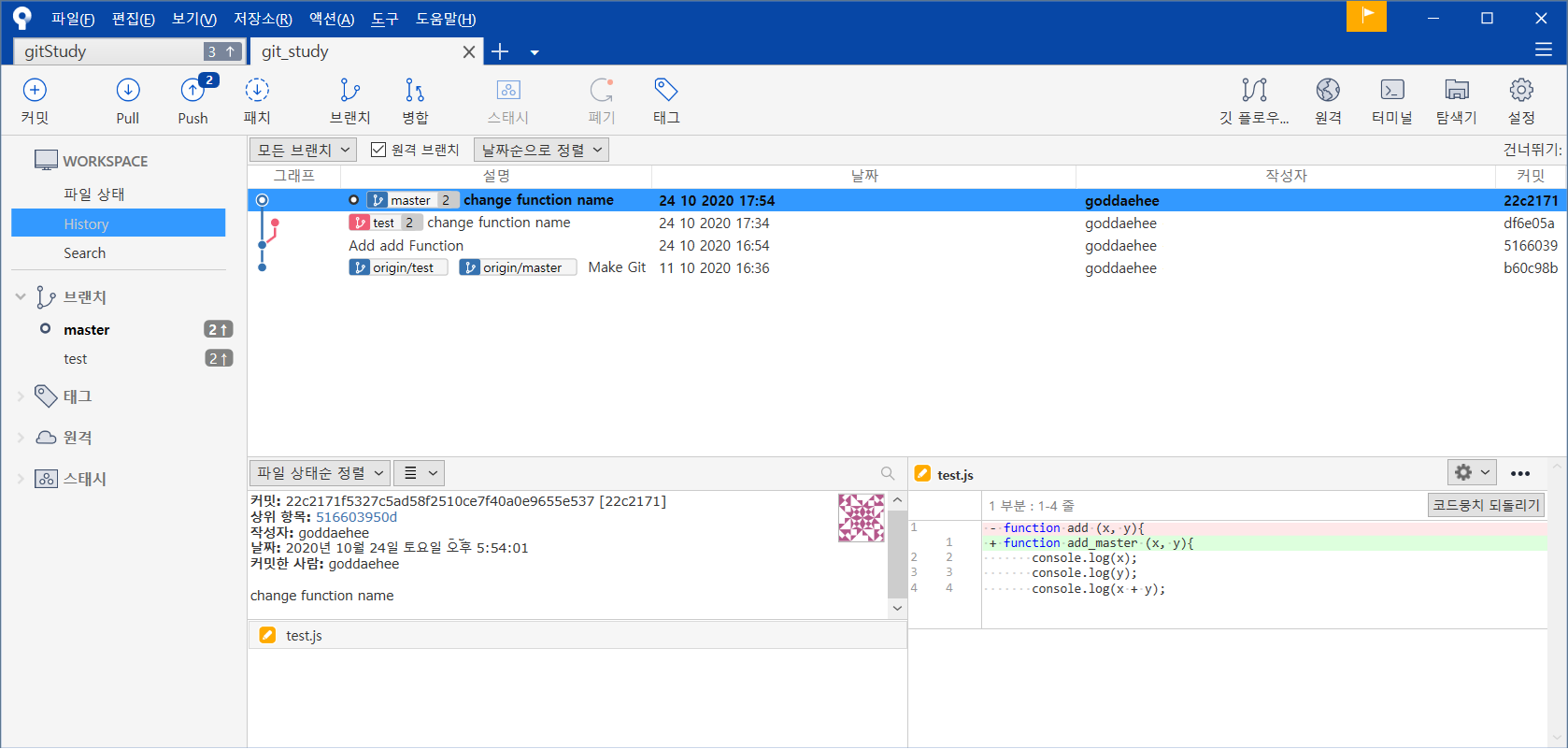 - 이전에 했던것과 같이 커밋후 히스토리 확인하기