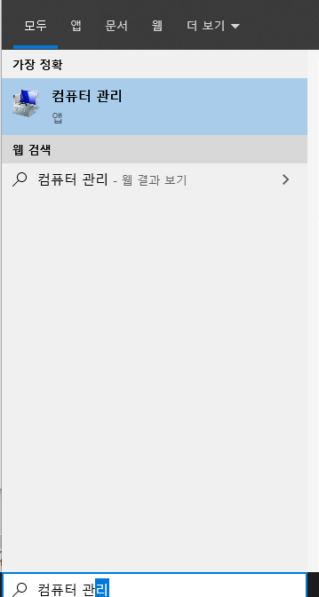 - Window키 클릭 => 컴퓨터 관리 검색 => 실행