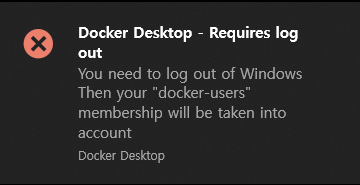 [ You need to log out of Windows Then your "docker-users" membership will be taken into account Docker Desktop ]