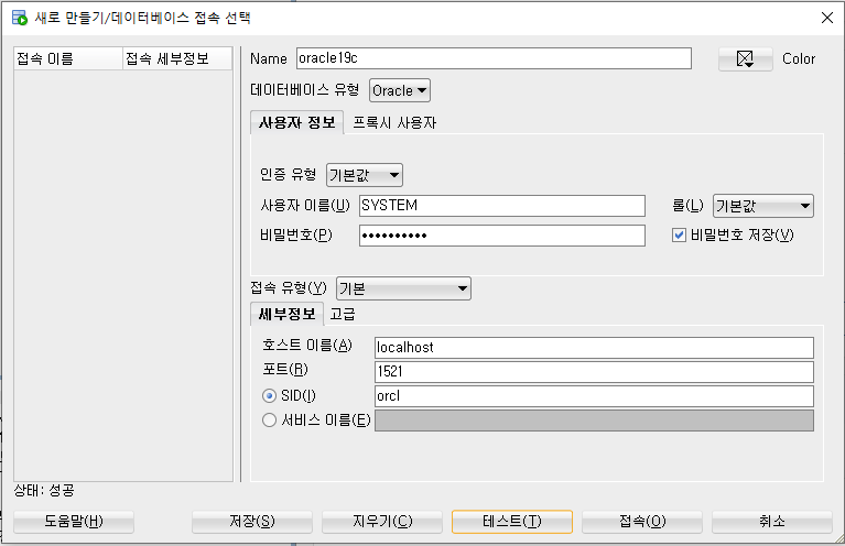 1) 전역 데이터베이스 이름(G) : Oracle System Identifier(SID), Unique 한 식별자. 기본 설정되어있는 SID를 사용한다.
