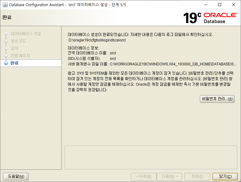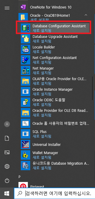 - window >> Oracle - OraDB19Home1 >> Database Configuration Assistant 클릭.