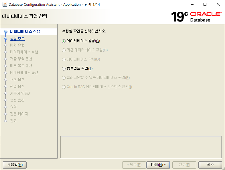 - 데이터베이스 생성(C) >> 다음(N) 클릭.