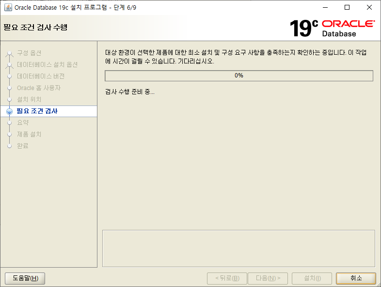 - 메모리 크기 등 설치 환경 검사가 수행 된다.