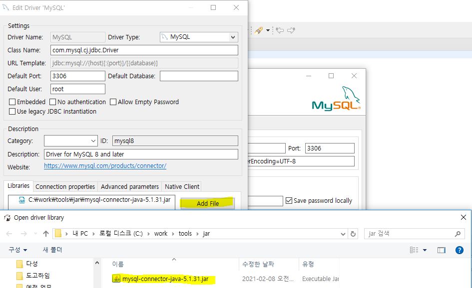- 신규 열결시 : 'DB 연결 드라이버 변경'