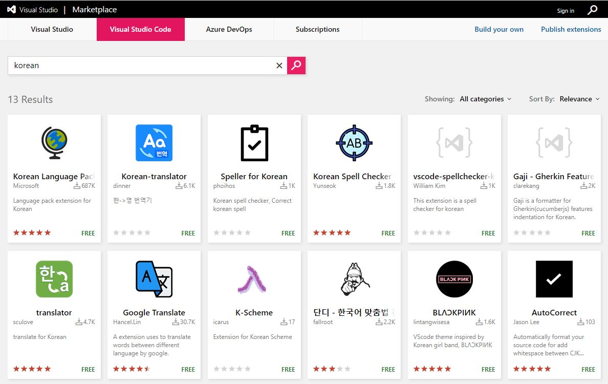인터넷이 사용 가능한 환경에서는 vscode extension market에서 확장프로그램 조회/다운로드/설치하면 된다.