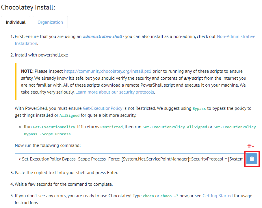 Windows용 패키지 매니저 chocolatey 설치 하기