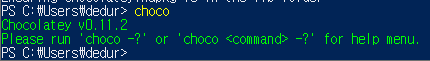 - choco 를 입력하여 버전이 나오면 설치 성공.
