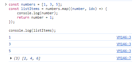 ex) map()함수를 통해 각 배열의 요소에 +1 하여 새로운 배열로 생성하는 예제