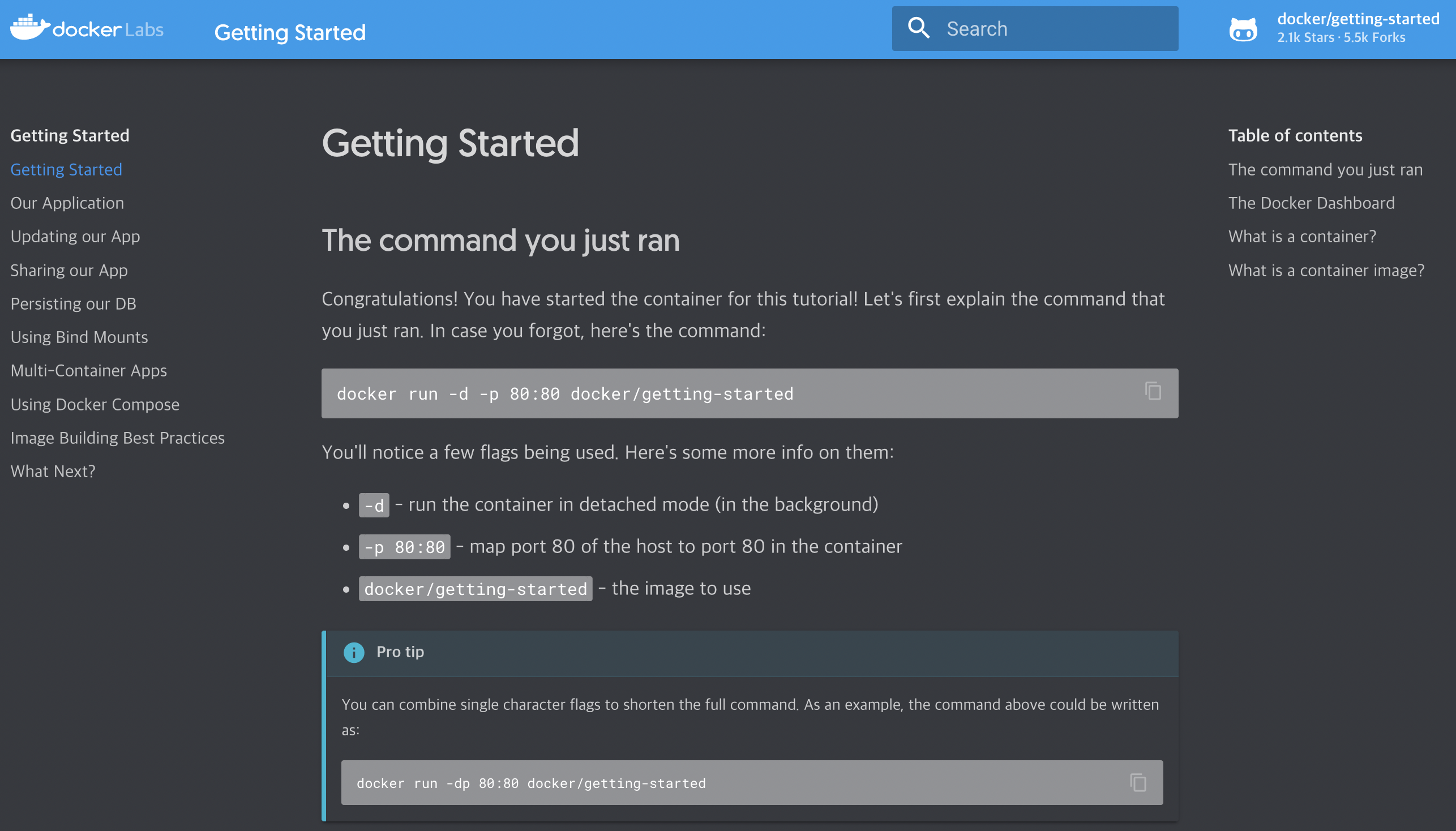docker run -dp 80:80 docker/getting-started