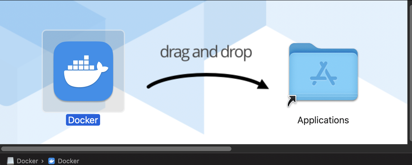 - 다운로드한 .dmg 파일을 실행하여 Docker.app을 응용 프로그램으로 복사해준다.