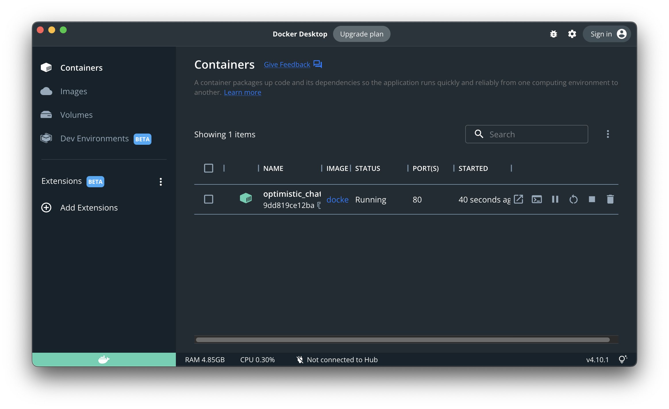 1) Docker Desktop 대시보드를 확인해보자.