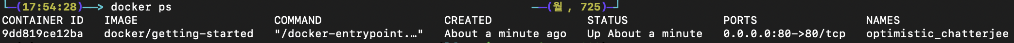 # -p 80:80 : 호스트의 포트 80을 컨테이너 포트 80와 매핑