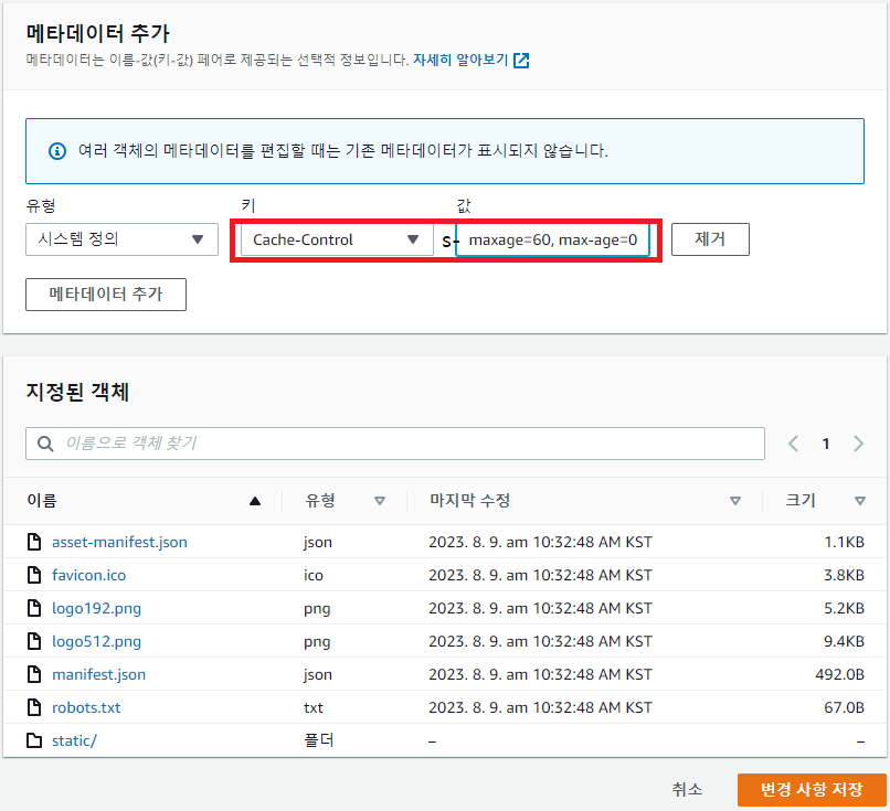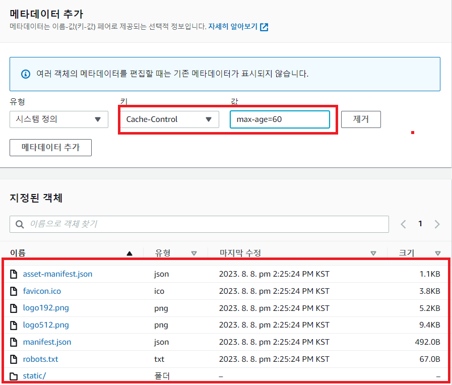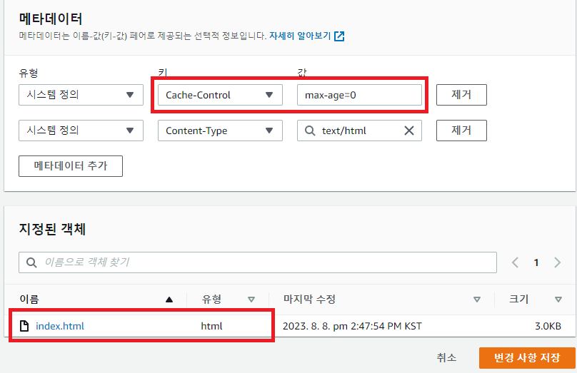 - 나와 같은 경우 index.html은 캐시를 제외 하려고 하였다.