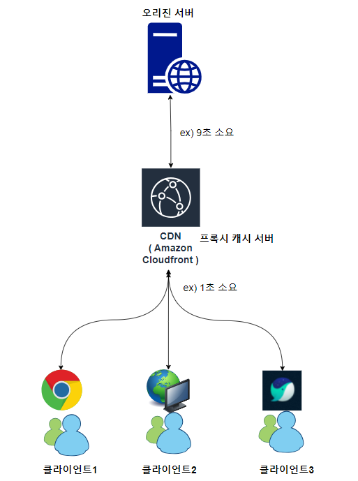 (클라이언트 입장에서는 프록시 캐시 서버를 바라보게 되고, 10초 > 1초로 개선되는 효과)
