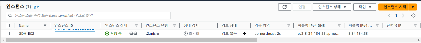 - Console 에서 1개의 인스턴스가 추가된 것을 확인 할 수 있다.