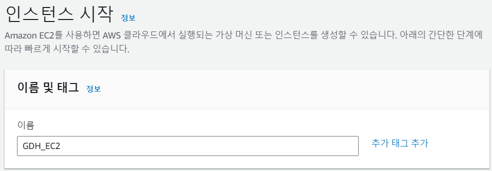 - 어떤 인스턴스 인지 구분지을 수 있도록 이름 및 태그 설정 한다.