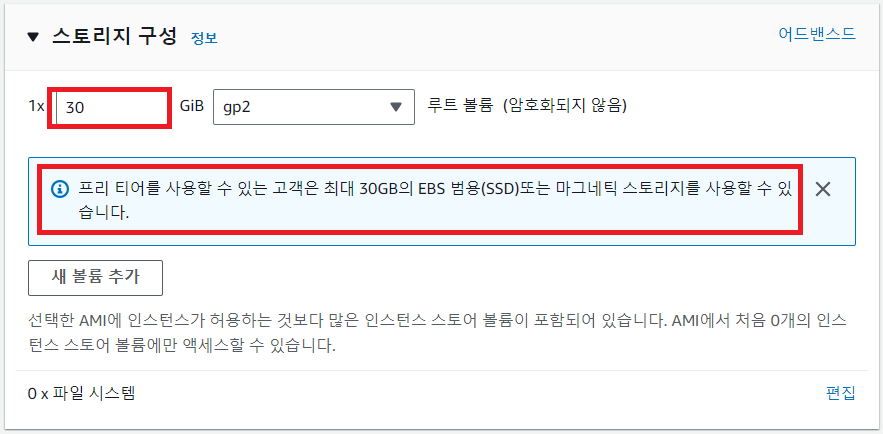 - 프리티어는 최대 30GB까지 가능하다. (난 8GB로 진행 하였다.)