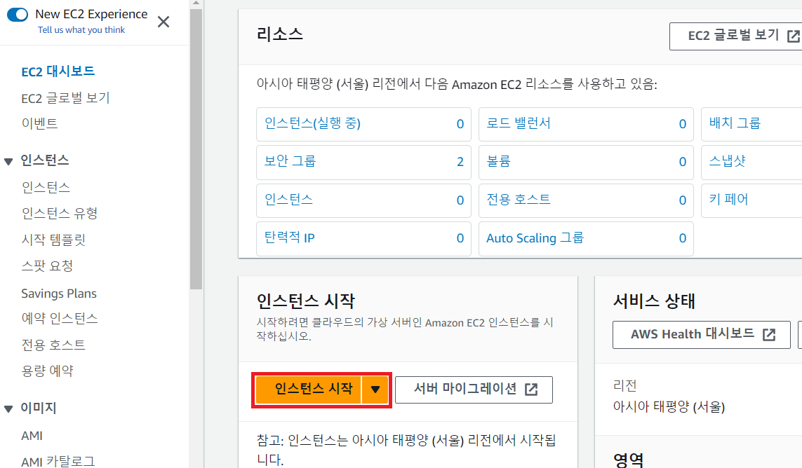 1. EC2 대시보드에 접속하기