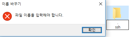 - .ssh.라고 폴더 이름을 입력하면 마지막에 있는 마침표가 자동으로 제거된다.