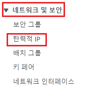 - 왼쪽 카테고리에서 탄력적 IP를 선택한다.