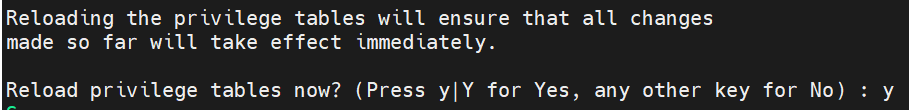 Reload privilege tables now? (Press y|Y for Yes, any other key for No) : y
