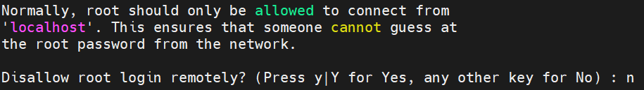 Disallow root login remotely? (Press y|Y for Yes, any other key for No) :n