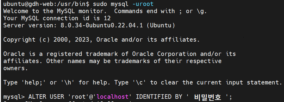 - 사실 root 계정은 사용하지 않을꺼지만 일단 예전에 설정했던것과 같이 비밀번호도 변경 해두었다.